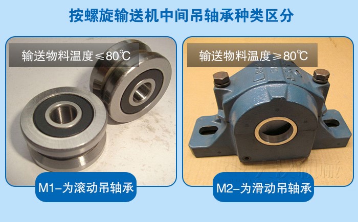 1、M1-為滾動(dòng)吊軸承,采用80000型密封軸承,軸蓋上另有防塵密封結(jié)構(gòu),密封效果好,吊軸壽命長(zhǎng)。(常用在不易加油,不加油或油對(duì)物料有污染的地方,輸送物料溫度≤80℃)