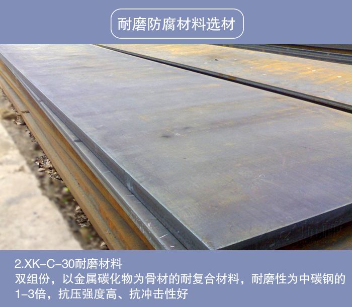 雙組份,以金屬碳化物為骨材的耐復(fù)合材料,耐磨性為中碳鋼的1-3倍,抗壓強度高、抗沖擊性好。用于3mm以下粒度過流部件修復(fù)及大面積預(yù)途。如浮選槽、攪拌桶,葉片等。