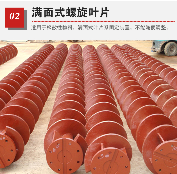 滿面式螺旋葉片/實體螺旋葉片 滿面式適用于松散性物料,滿面式葉片系固定裝置,不能隨便調(diào)整。