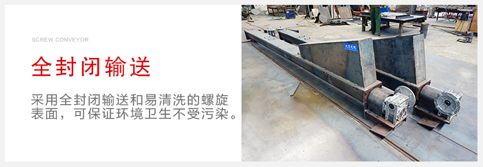 4、采用全封閉輸送和易清洗的螺旋表面,可保證環(huán)境衛(wèi)生和所送物料不受污染、不泄漏。