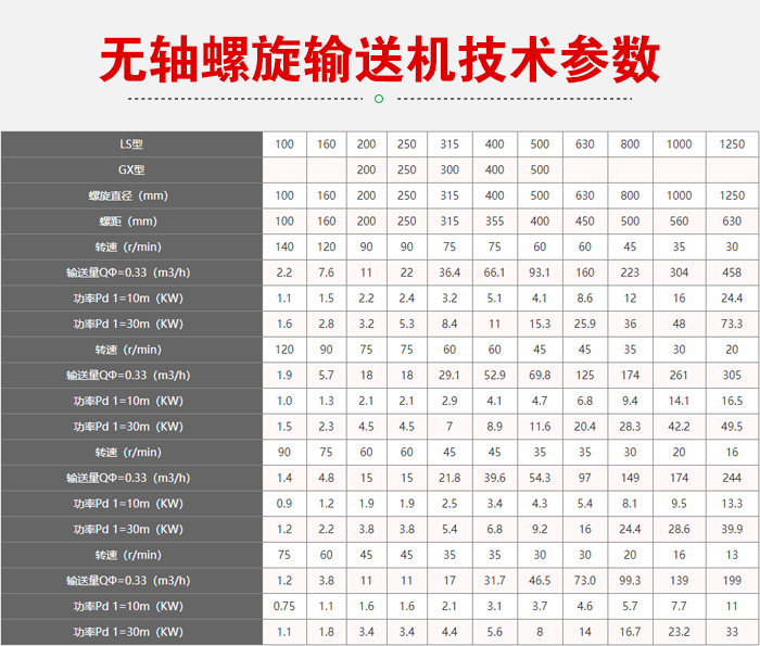 2、相對于有軸螺旋輸送機(jī),其輸送量是相同直徑有軸螺旋輸送機(jī)的1.5倍;