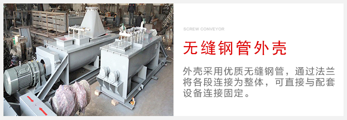 1、螺旋輸送機(jī)外殼采用優(yōu)質(zhì)無(wú)縫鋼管,通過(guò)法蘭將各段連接為整體,可直接與配套設(shè)備連接固定,無(wú)需地基基礎(chǔ);