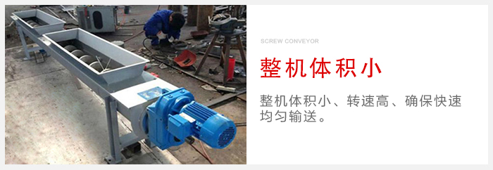 小型旋輸送機(jī)主要有傳動(dòng)裝置、進(jìn)料口、螺旋軸、輸送管、出料口等部件組成。水平螺旋輸送機(jī)是利用旋轉(zhuǎn)的螺旋將被輸送的物料沿固定的機(jī)殼內(nèi)推移而進(jìn)行輸送工作,頭部及尾部軸承移至殼體外,吊軸承采用滑動(dòng)軸承設(shè)有防塵密封裝置,軸瓦一般采用粉末冶金,輸送水泥采用毛氈軸瓦,吊軸和螺旋軸采用滑塊連接。