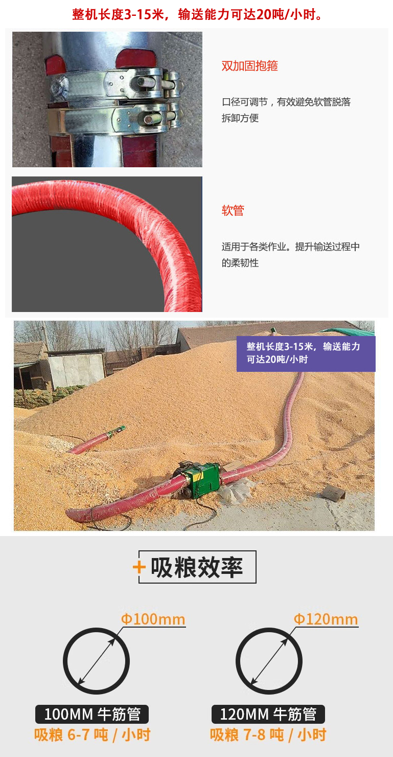 簡(jiǎn)介:吸糧機(jī)是一種通過(guò)管道輸送散糧的設(shè)備。它的主要功能是將谷物從一個(gè)設(shè)備運(yùn)輸?shù)搅硪粋€(gè)設(shè)備。常見(jiàn)的是把地上的散糧運(yùn)到卡車上,卡車上的散糧運(yùn)到糧庫(kù),體積小、攜帶方便。