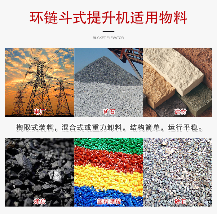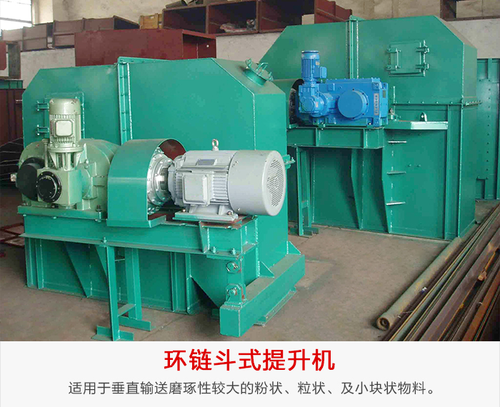 環(huán)鏈斗式提升機(jī)適用于垂直輸送磨琢性較大的粉狀、粒狀、及小塊狀物料,如糧食、煤、水泥、碎礦石等,輸送高度不超過40m,其特點(diǎn)為,結(jié)構(gòu)簡(jiǎn)單,運(yùn)行平穩(wěn),掏取式裝料,混合式或重力卸料,輪緣采用組合鏈輪,更換方便,鏈輪輪緣經(jīng)特殊處理壽命長,下部如采用重力自動(dòng)張緊裝置,能保持恒定的張力,避免打滑或脫鏈,同時(shí)在料斗遇阻時(shí),有一定的容讓性能夠有效地保護(hù)運(yùn)動(dòng)部件,物料溫度不超過250℃。
