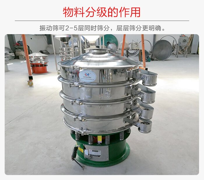 有些生產(chǎn)線中物料的粒徑并不是都是一樣的,粒徑是有很大不同的,利用振動(dòng)篩設(shè)備可以將物料進(jìn)行分級(jí),按照粒徑大小分別篩分到不同的下一階段生產(chǎn)線中去,最高可以分6級(jí),以實(shí)現(xiàn)更加精細(xì)化的生產(chǎn)活動(dòng)。