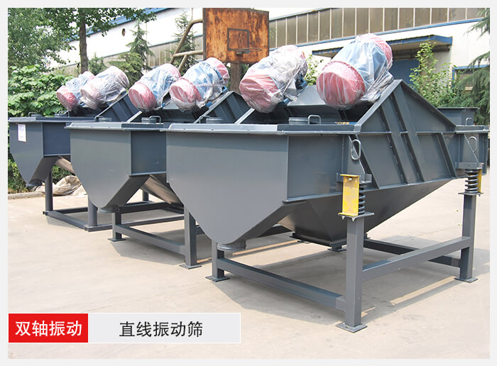雙軸振動(dòng)篩是利用同步異向回轉(zhuǎn)的雙不平衡重激振,篩面水平或緩傾斜,篩箱的運(yùn)動(dòng)軌跡為直線。