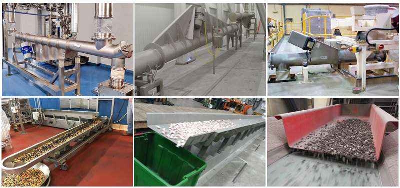 載體:可選擇U型槽和管狀的,也可以制成敞開(kāi)式或密封式,以滿足不同的工藝流程。料槽的進(jìn)料和出料也可根據(jù)需要制成單點(diǎn)/多點(diǎn)進(jìn)料,單點(diǎn)/多點(diǎn)出料等多種型式。